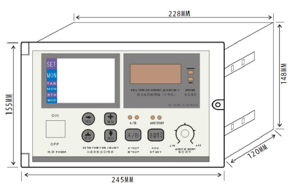 外形尺寸:長 X 寬 X 深度=245 X 155 X 120 開孔尺寸:長 X 寬=229 X 119