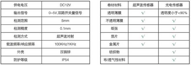 HD-400超聲波糾偏傳感器應(yīng)用高頻超聲波直線傳 播的原理,用來檢測卷材的邊緣位置。與光電傳感器相 比, 不會(huì)受材料透明度的影響,所以使用時(shí)無需校調(diào), 非常方便。適用于不透氣材料(例如塑料薄膜,紙張等 等) 的追邊應(yīng)用(透氣材料例如布,無紡布則不適合)。